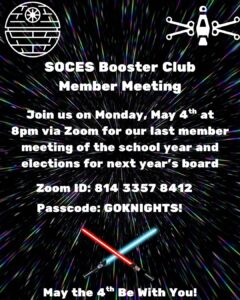 Join us on Friday, May 8th at 9am for our next – AND LAST- PTSA…